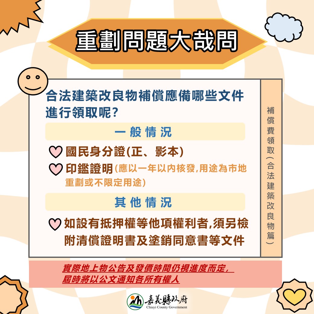 聯絡電話:嘉義縣政府 地政處重劃科 05-3620123